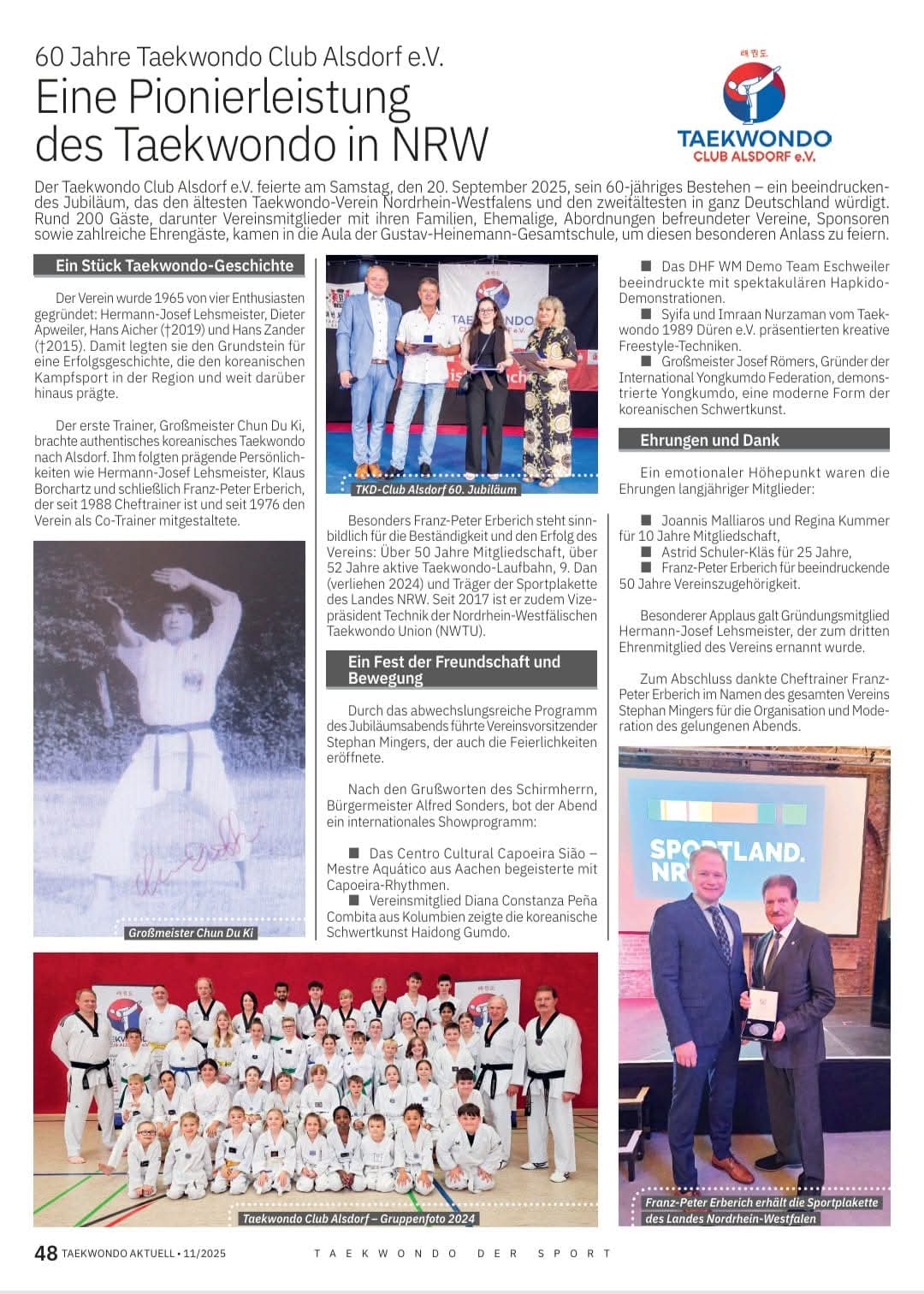 Jubiläumsbericht anlässlich des 60-jährigen Vereinsbestehens des Taekwondo Club Alsdorf e.V. abschließend aus der neuen November-Ausgabe der Taekwondo Aktuell.