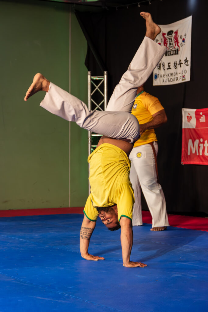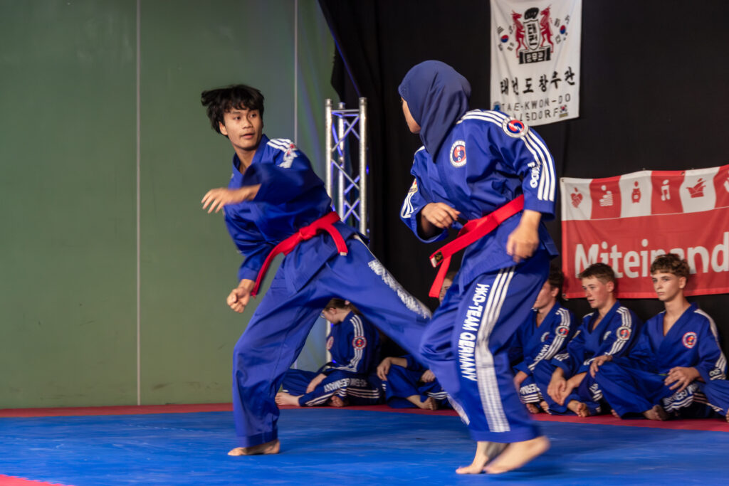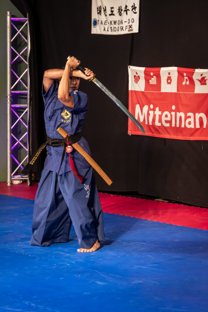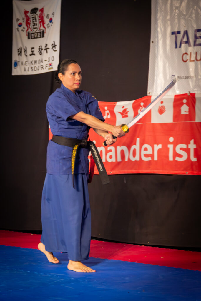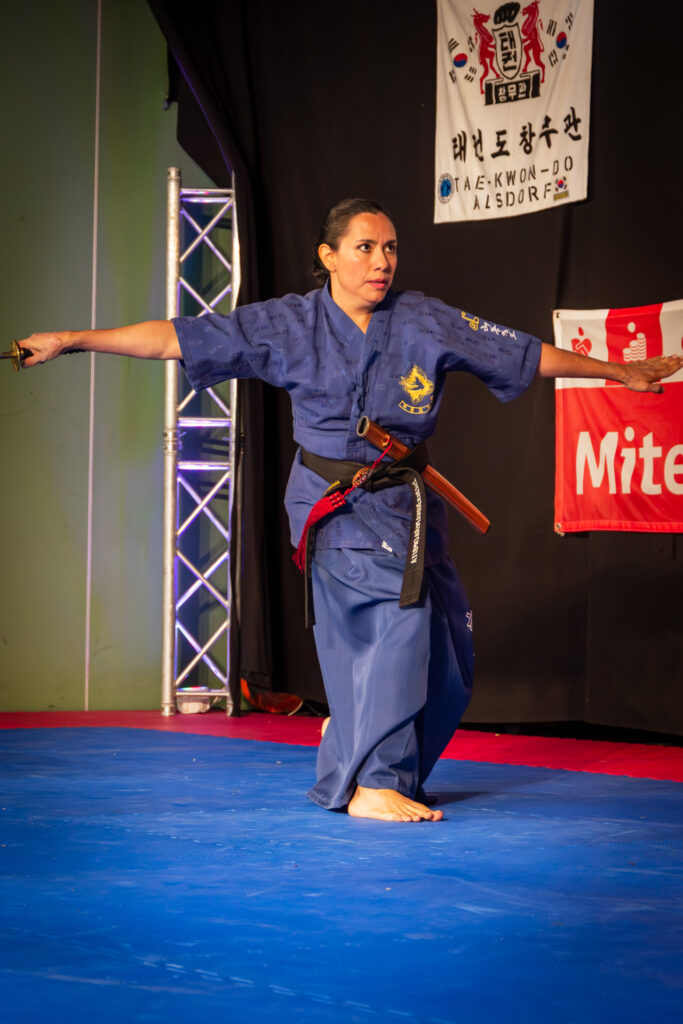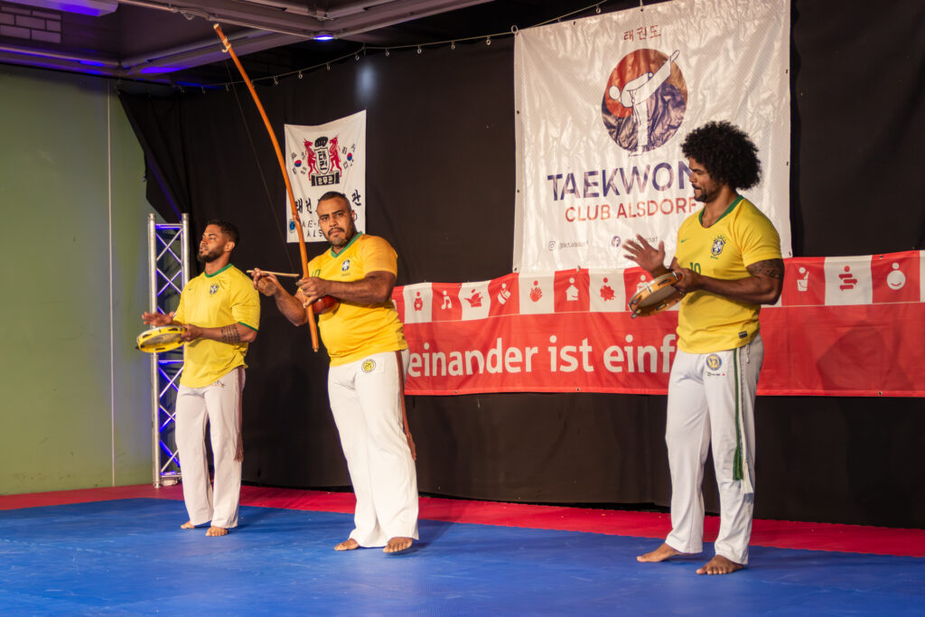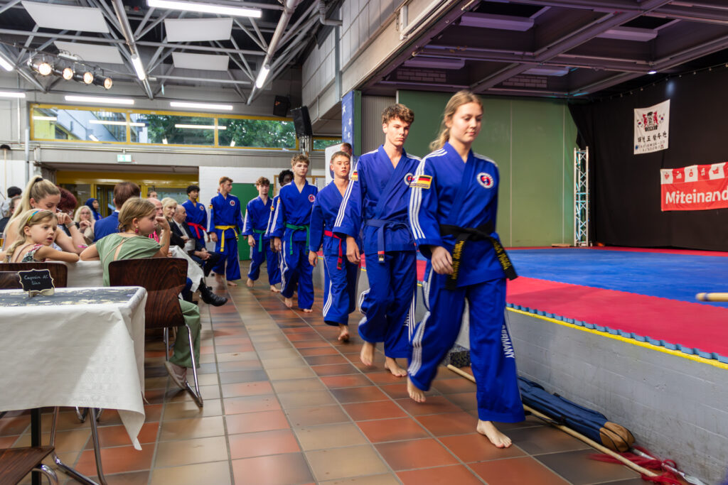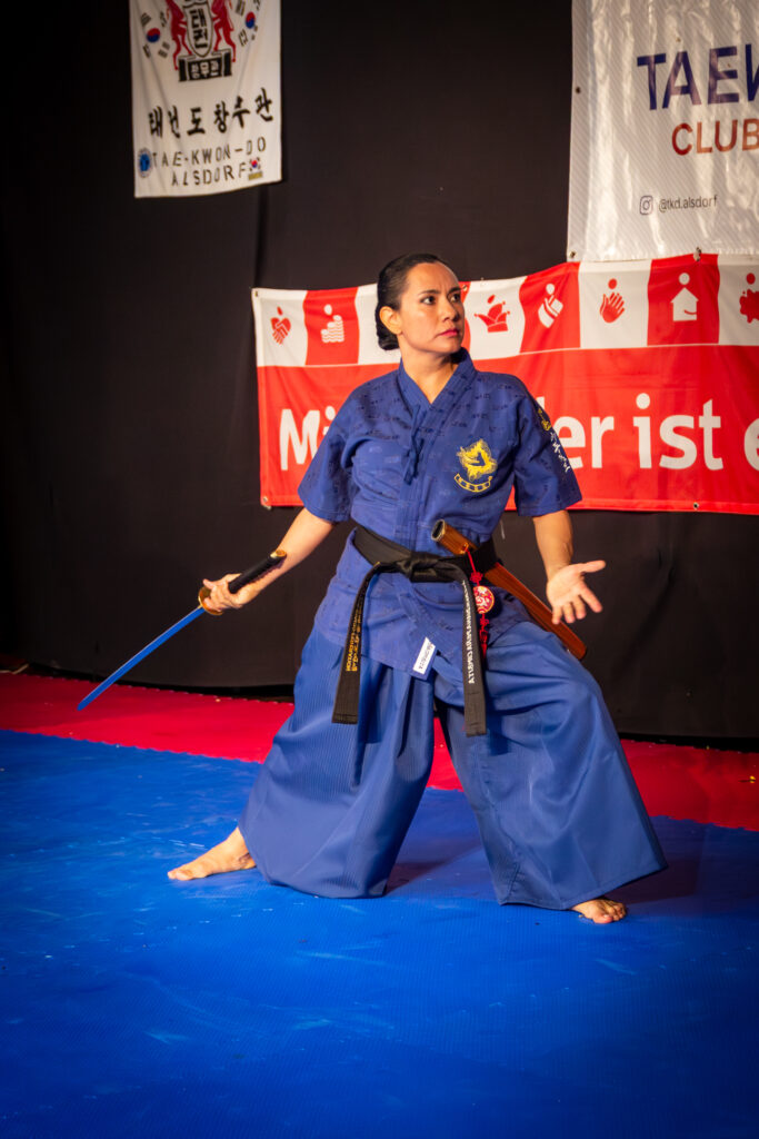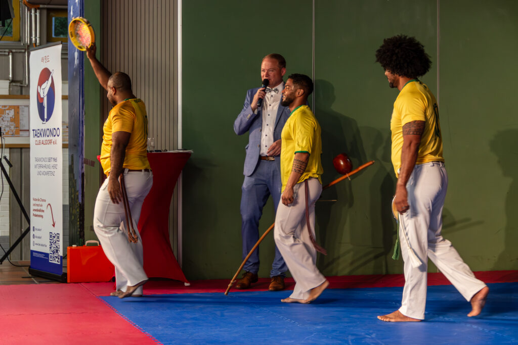 Durch das Programm führte Vereinsvorsitzender Stephan Mingers, der die Feierlichkeiten eröffnete. Neben Grußworten des Schirmherrn, Bürgermeister Alfred Sonders, bot der Abend ein abwechslungsreiches Programm mit internationalen Vorführungen: Das Centro Cultural Capoeira Sião – Mestre Aquático aus Aachen zeigte Capoeira, Vereinsmitglied Diana Constanza Peña Combita aus Kolumbien präsentierte die koreanische Schwertkunst Haidong Gumdo, und das DHF WM Demo Team Eschweiler (Deutsche Hapkido Federation) überzeugte mit spektakulären Demonstrationen. Ergänzt wurde das Programm durch Freestyle-Technik von Syifa und Imraan Nurzaman des Taekwondo 1989 Düren e.V. sowie die koreanische Schwertkunst Yongkumdo von Großmeister Josef Römers (Gründer International Yongkumdo Federation).