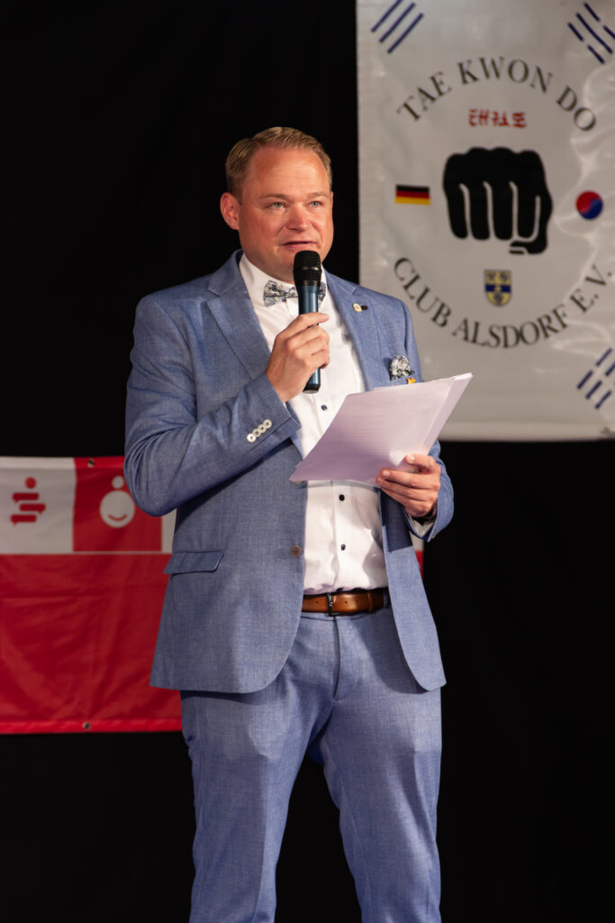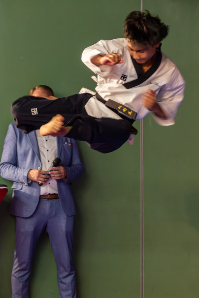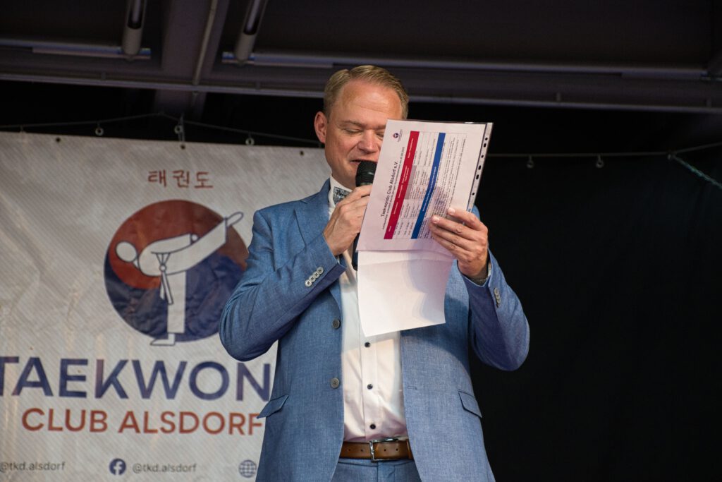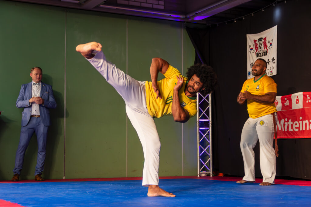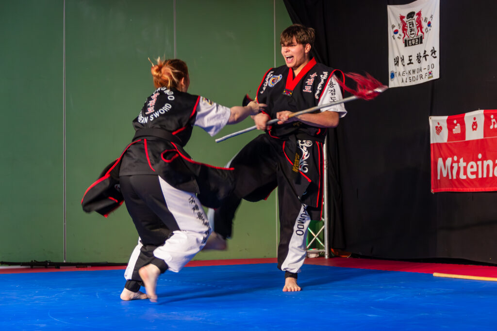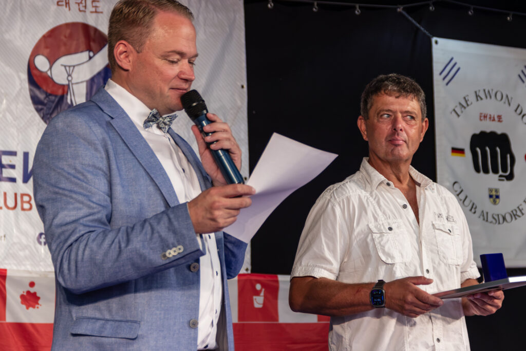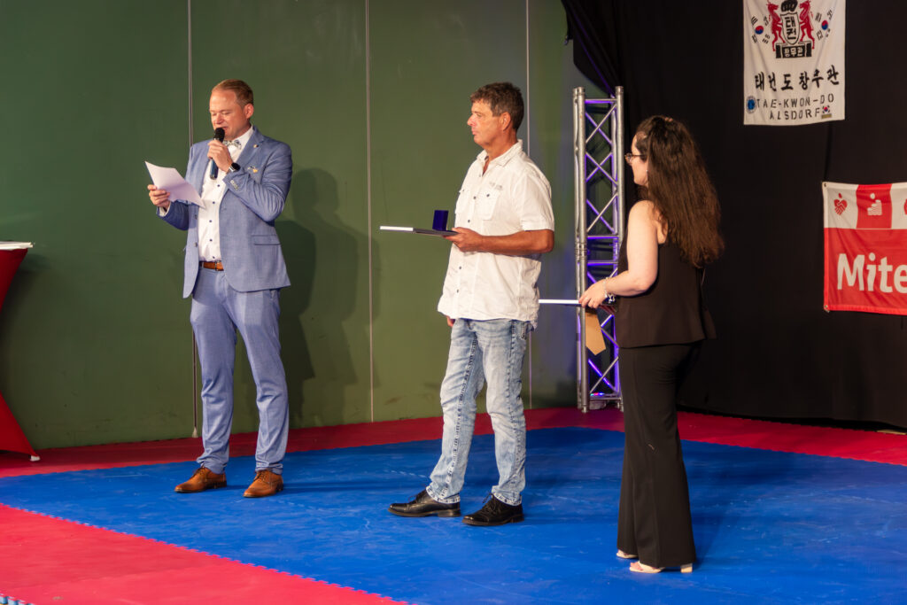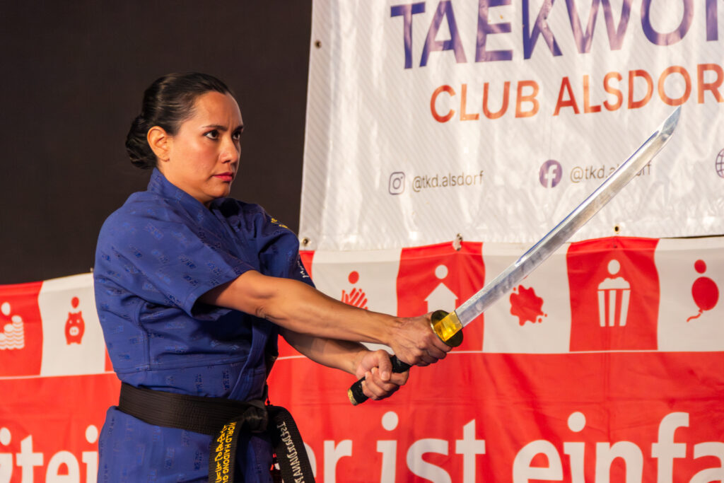 Durch das Programm führte Vereinsvorsitzender Stephan Mingers, der die Feierlichkeiten eröffnete. Neben Grußworten des Schirmherrn, Bürgermeister Alfred Sonders, bot der Abend ein abwechslungsreiches Programm mit internationalen Vorführungen: Das Centro Cultural Capoeira Sião – Mestre Aquático aus Aachen zeigte Capoeira, Vereinsmitglied Diana Constanza Peña Combita aus Kolumbien präsentierte die koreanische Schwertkunst Haidong Gumdo, und das DHF WM Demo Team Eschweiler (Deutsche Hapkido Federation) überzeugte mit spektakulären Demonstrationen. Ergänzt wurde das Programm durch Freestyle-Technik von Syifa und Imraan Nurzaman des Taekwondo 1989 Düren e.V. sowie die koreanische Schwertkunst Yongkumdo von Großmeister Josef Römers (Gründer International Yongkumdo Federation).