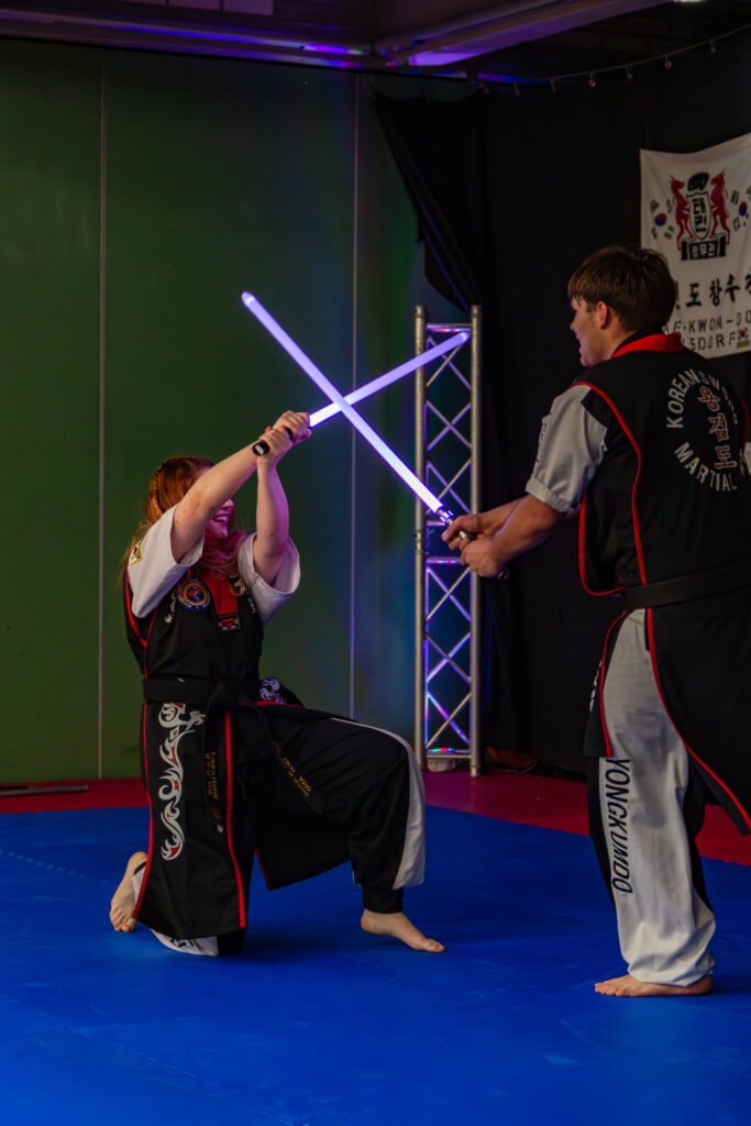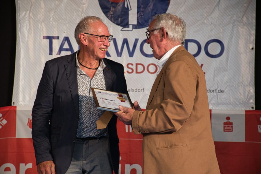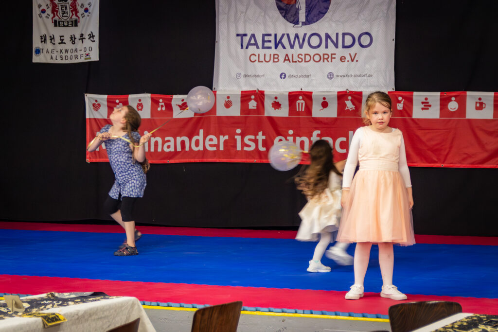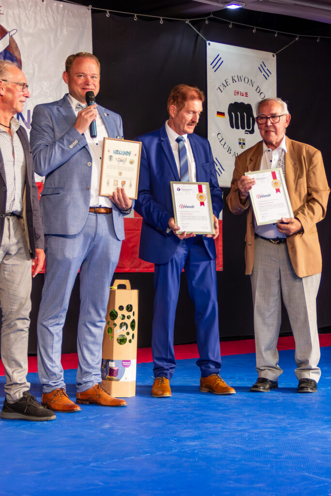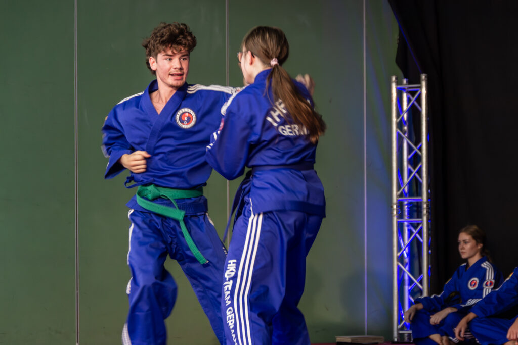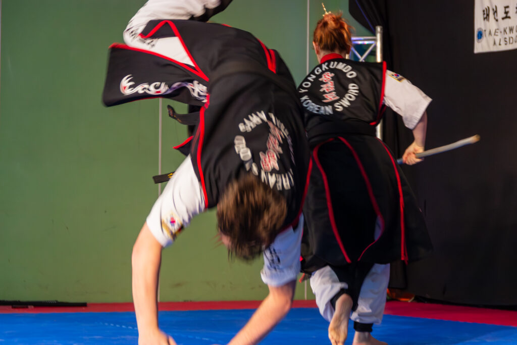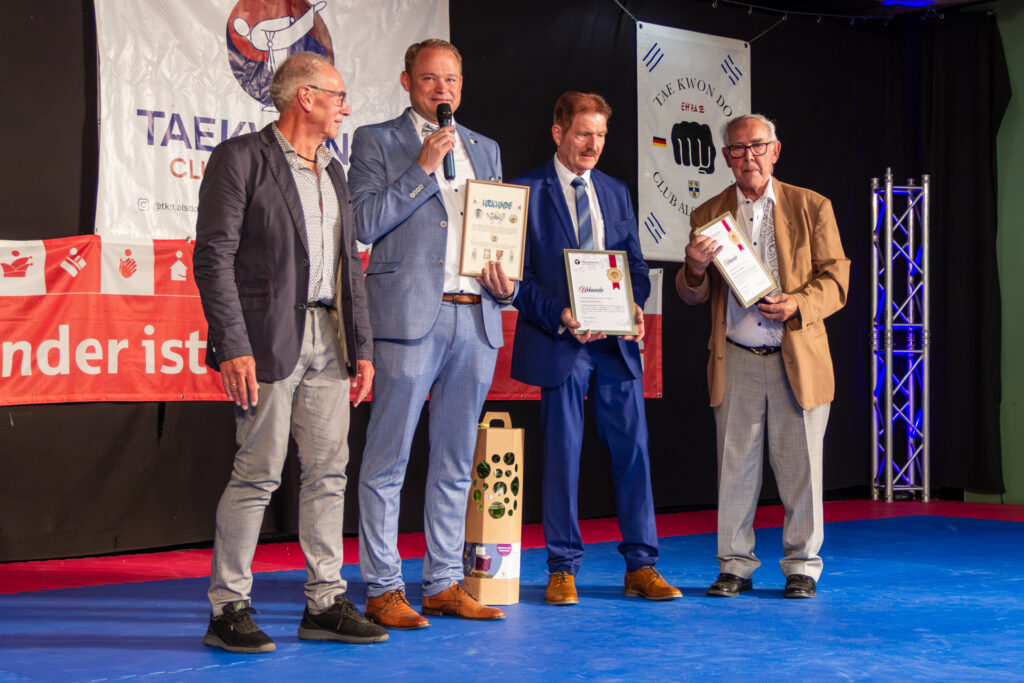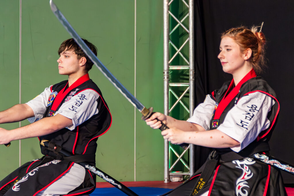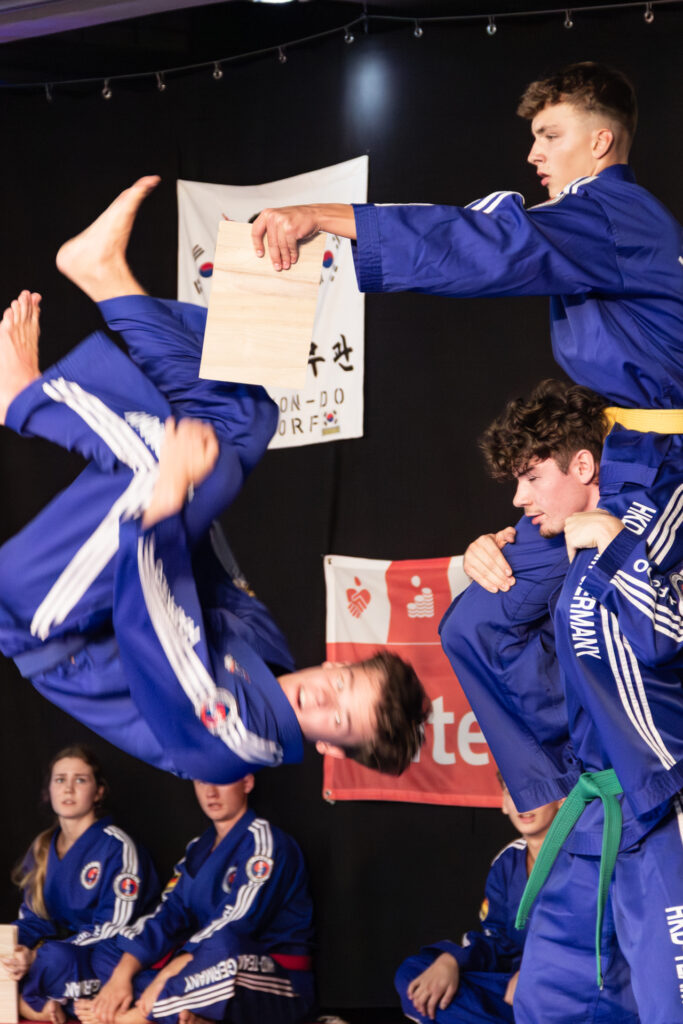Durch das Programm führte Vereinsvorsitzender Stephan Mingers, der die Feierlichkeiten eröffnete. Neben Grußworten des Schirmherrn, Bürgermeister Alfred Sonders, bot der Abend ein abwechslungsreiches Programm mit internationalen Vorführungen: Das Centro Cultural Capoeira Sião – Mestre Aquático aus Aachen zeigte Capoeira, Vereinsmitglied Diana Constanza Peña Combita aus Kolumbien präsentierte die koreanische Schwertkunst Haidong Gumdo, und das DHF WM Demo Team Eschweiler (Deutsche Hapkido Federation) überzeugte mit spektakulären Demonstrationen. Ergänzt wurde das Programm durch Freestyle-Technik von Syifa und Imraan Nurzaman des Taekwondo 1989 Düren e.V. sowie die koreanische Schwertkunst Yongkumdo von Großmeister Josef Römers (Gründer International Yongkumdo Federation).