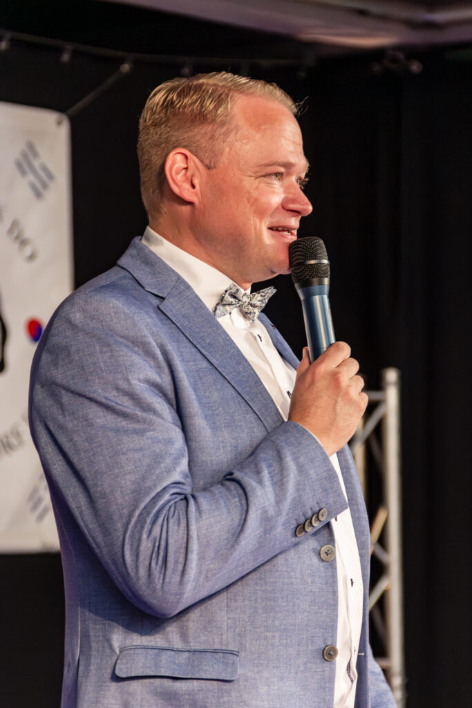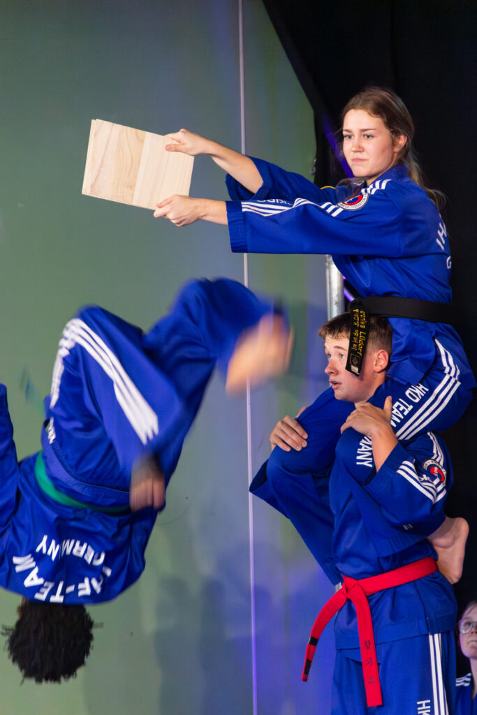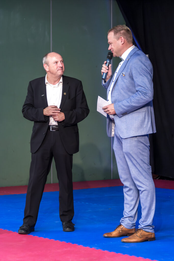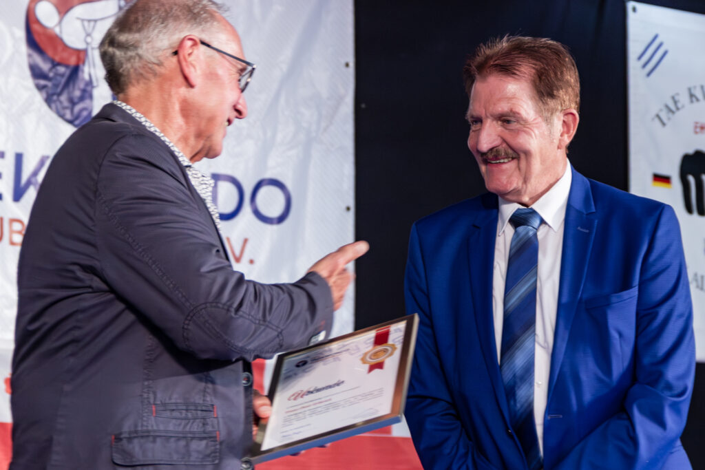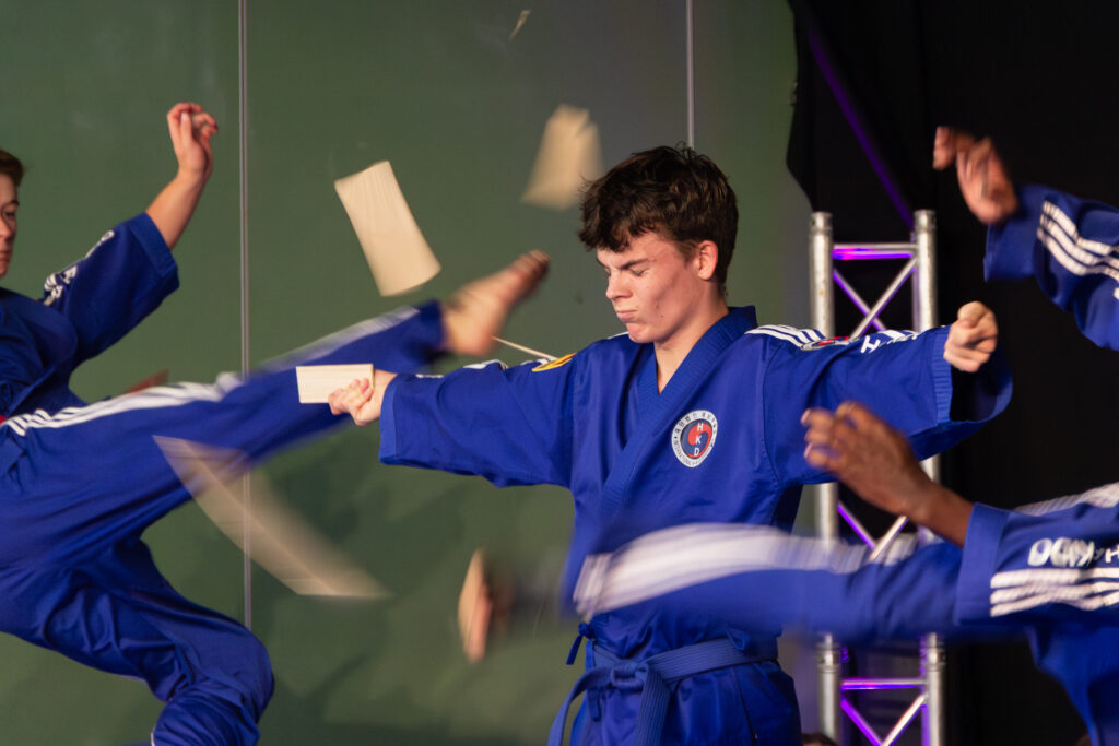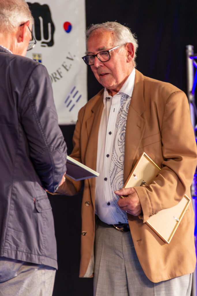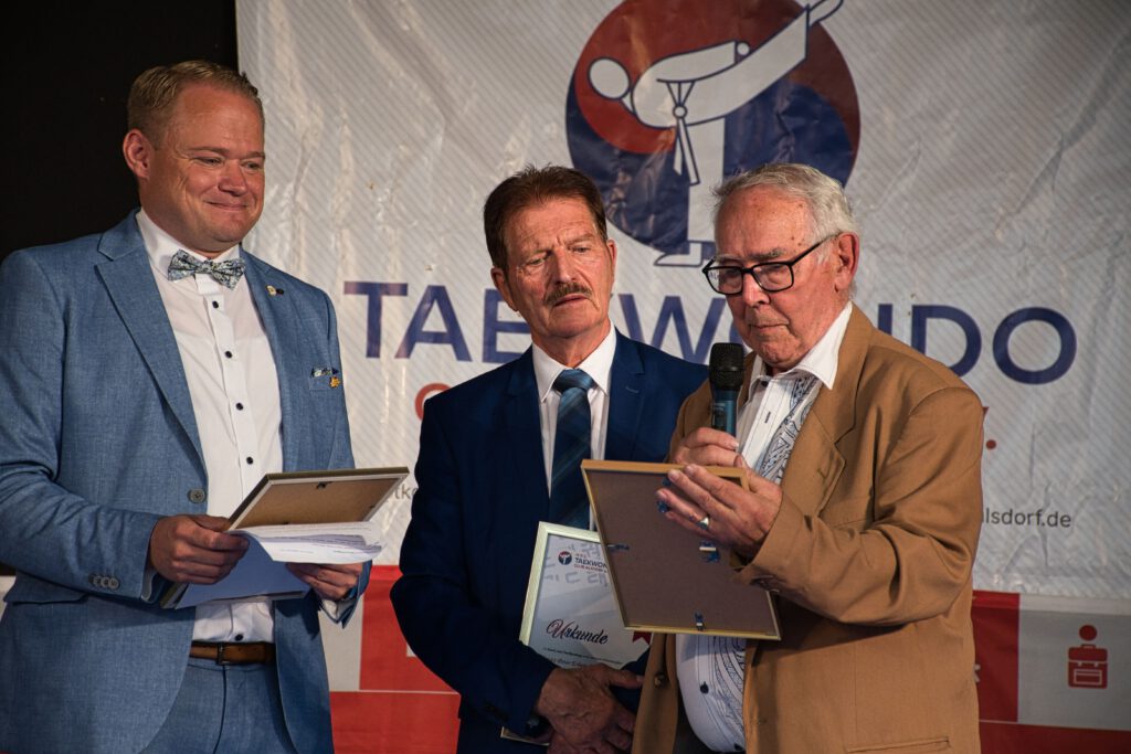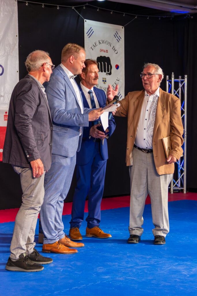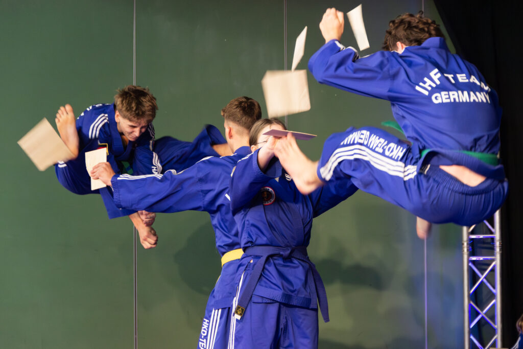 Durch das Programm führte Vereinsvorsitzender Stephan Mingers, der die Feierlichkeiten eröffnete. Neben Grußworten des Schirmherrn, Bürgermeister Alfred Sonders, bot der Abend ein abwechslungsreiches Programm mit internationalen Vorführungen: Das Centro Cultural Capoeira Sião – Mestre Aquático aus Aachen zeigte Capoeira, Vereinsmitglied Diana Constanza Peña Combita aus Kolumbien präsentierte die koreanische Schwertkunst Haidong Gumdo, und das DHF WM Demo Team Eschweiler (Deutsche Hapkido Federation) überzeugte mit spektakulären Demonstrationen. Ergänzt wurde das Programm durch Freestyle-Technik von Syifa und Imraan Nurzaman des Taekwondo 1989 Düren e.V. sowie die koreanische Schwertkunst Yongkumdo von Großmeister Josef Römers (Gründer International Yongkumdo Federation).